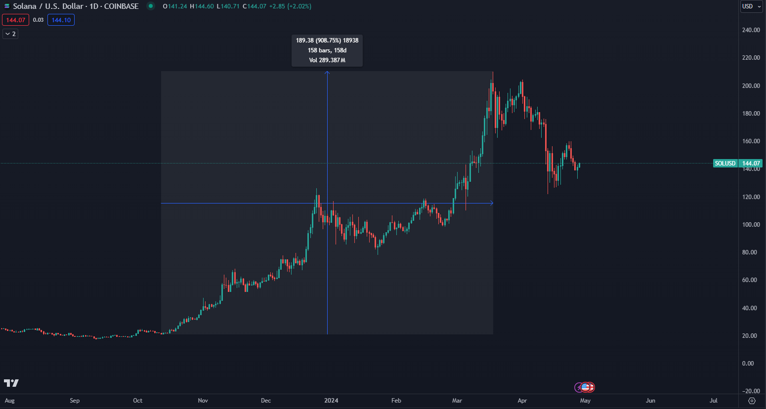 Od októbra stúpla o takmer 900 %, zatiaľ čo Ethereum len o 160 % a Bitcoin o 170 %. To hovorí za všetko. Solana je známa v priestore kryptomien vďaka neuveriteľne krátkym časom spracovania, ktoré blockchain ponúka. Hybridný protokol spoločnosti umožňuje výrazne skrátiť časy overovania transakcií aj vykonávania inteligentných zmlúv.