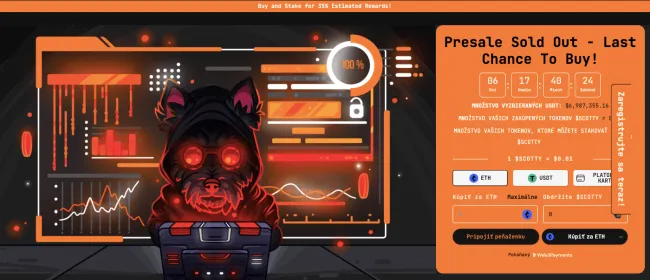 V rámci skupiny meme tokenov, ktoré ešte môžete získať pred zalistovaním na burzách, vyniká SCOTTY. Podstatou projektu v pozadí tokenu je využitie nástrojov umelej inteligencie na zvýšenie bezpečnosti blockchainu. Ide o jeden z mála meme tokenov, čo stavajú na vysokej využiteľnosti. To reflektuje aj vývoj predpredaja, ktorý stihol vyzbierať takmer 7 miliónov dolárov.