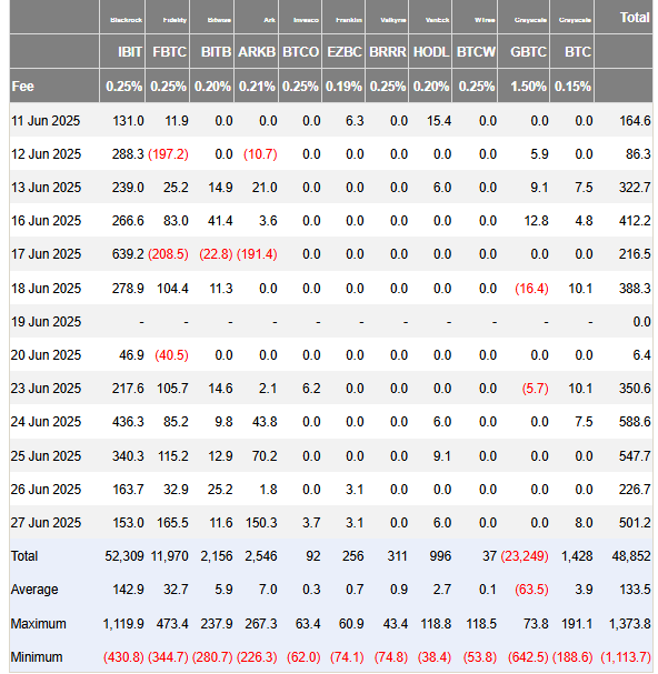 Bitcoin zaznamenal príliv kapitálu do ETF fondov. Zdroj: farside.co.uk