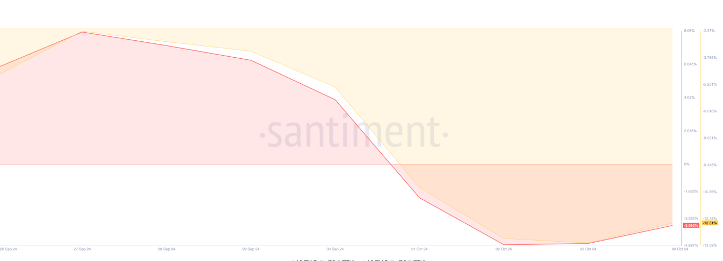 Ethereum, vedúci altcoin, zaznamenal za posledných sedem dní pokles hodnoty o 10 %. Tento pád predstavoval príležitosť na nákup, čo dokazuje jeho negatívny pomer trhovej hodnoty k realizovanej hodnote (MVRV), čo ukazujú údaje od spoločnosti Santiment.