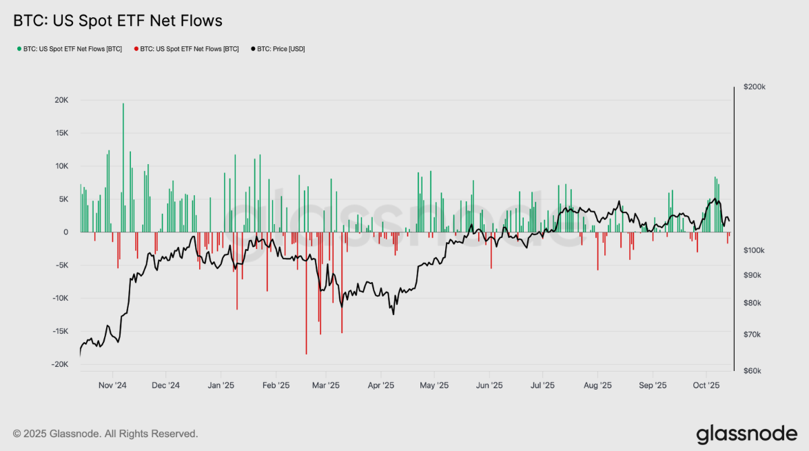 Aktivita v amerických spotových ETF sa súce oslabila, no neevidovali sme žiadne extrémy. Investori v týchto fondoch začali podľa správy Glassnode mierne predávať, pričom čistý odliv dosiahol približne 2 300 BTC za týždeň. Tento vývoj kontrastuje s minulými krízami, keď sa predaje prudko zrýchľovali.