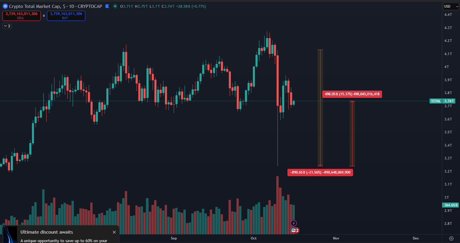 Kryptomeny podľa údajov TradingView čelia zlomovému momentu po jednej z najväčších likvidácií v histórii digitálnych aktív. Po tom, čo trh zaznamenal za jediný deň takmer 900 miliardovú likvidáciu kapitalizácie, začala sa formovať nová rovnováha medzi centralizovanými a decentralizovanými platformami.