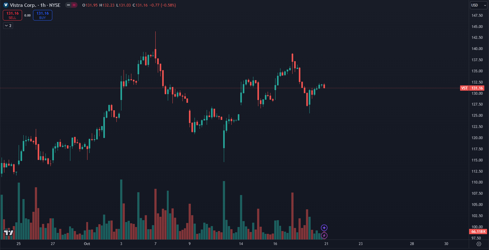 Napriek impozantnému rastu akcie VST zaznamenali nedávny pokles. K 17. októbru 2024 sa obchodovali za 127,87 dolárov, čo predstavuje pokles o 7,29 % z nedávneho maxima 137 dolárov. Tento pokles vyvolal diskusie o možnej korekcii. Za jediný deň dokonca došlo k masívnemu poklesu o 10 %.