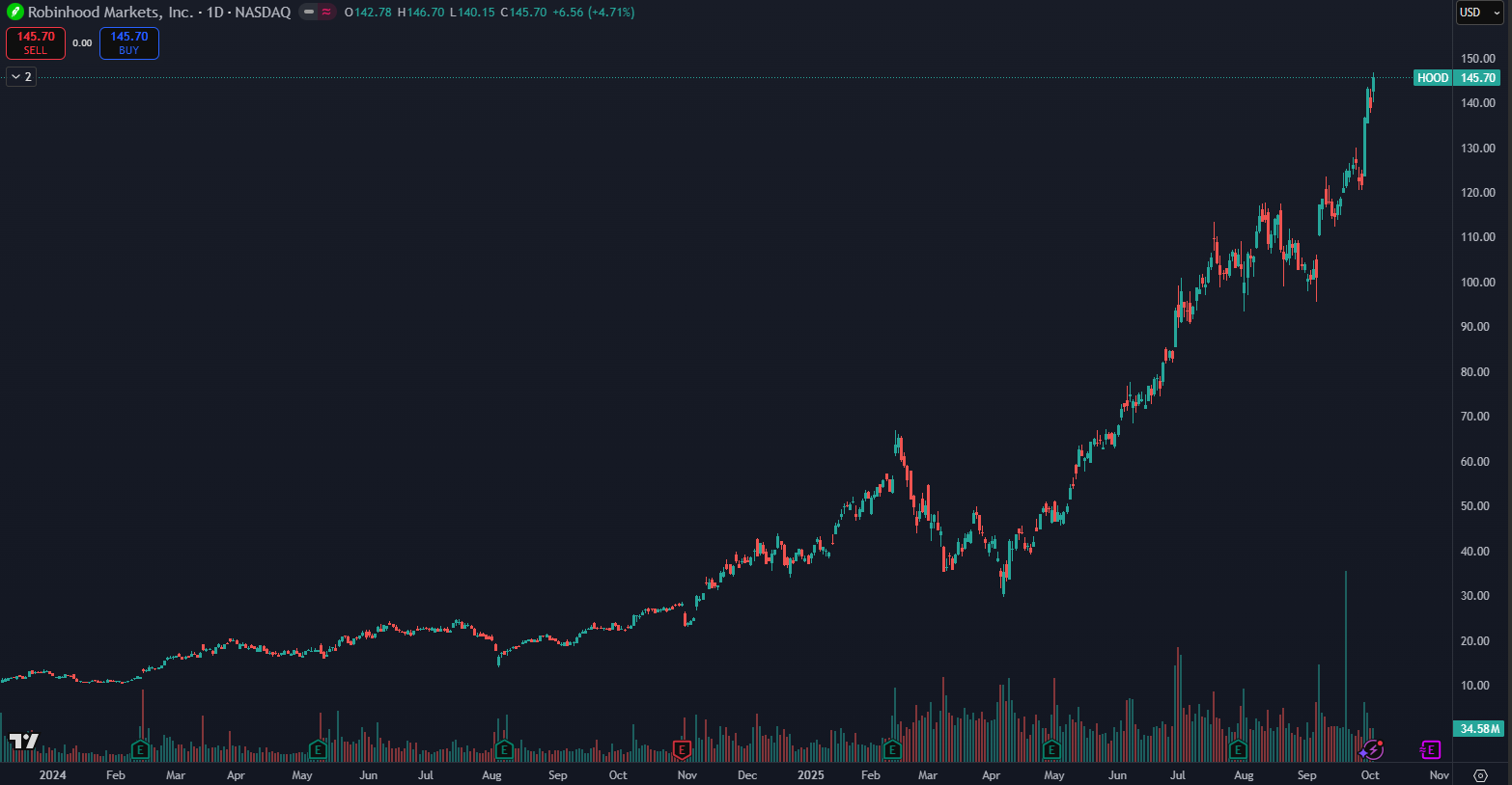 Akcie Robinhood v poslednom mesiaci vzrástli o 45 %, po oznámení zaradenia do indexu S&P 500, ukazujú údaje z TradingView. Tento krok priniesol výraznú mediálnu pozornosť a očakávania, že indexové fondy budú musieť nakupovať akcie spoločnosti, čím sa podporí ďalší rast ceny.