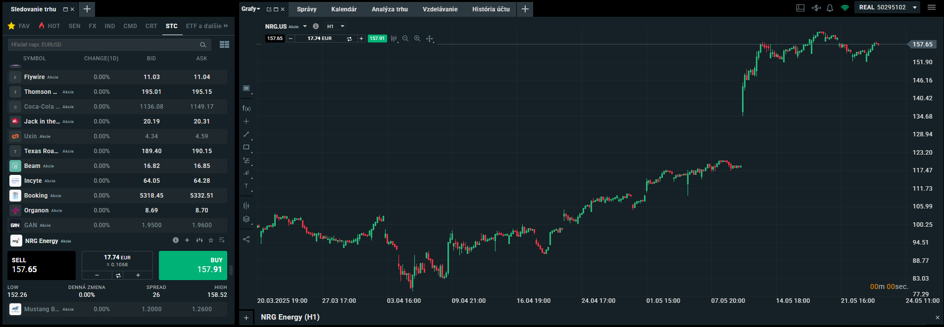 Akcie NRG Energy môžete kúpiť na platforme XTB, ktorá ponúka jednoduchý prístup k americkým akciám. Výhodou XTB sú nízke poplatky, intuitívne rozhranie a rýchle vykonávanie obchodov. Navyše, XTB umožňuje obchodovanie aj s menšími investíciami a poskytuje kvalitnú podporu pre investorov.