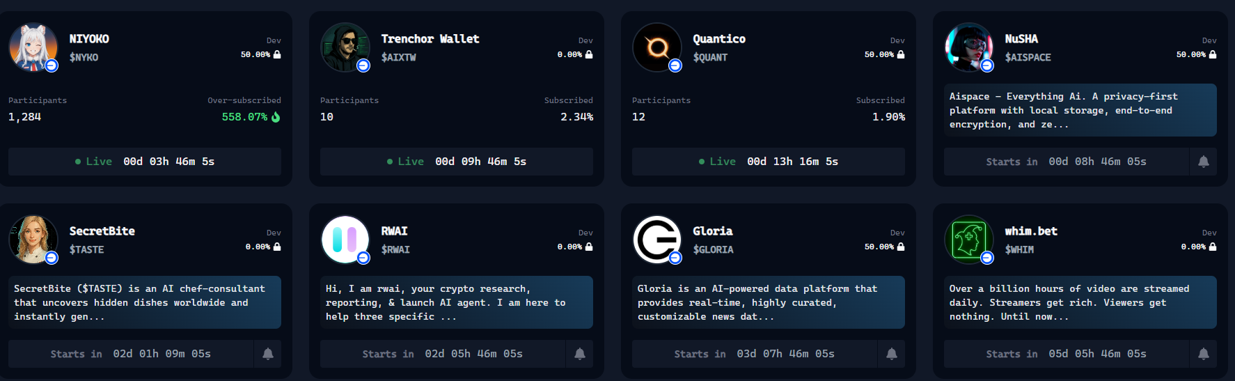 Najaktuálnejšie údaje z Genesis Launchpad. Zdroj: app.virtuals.io