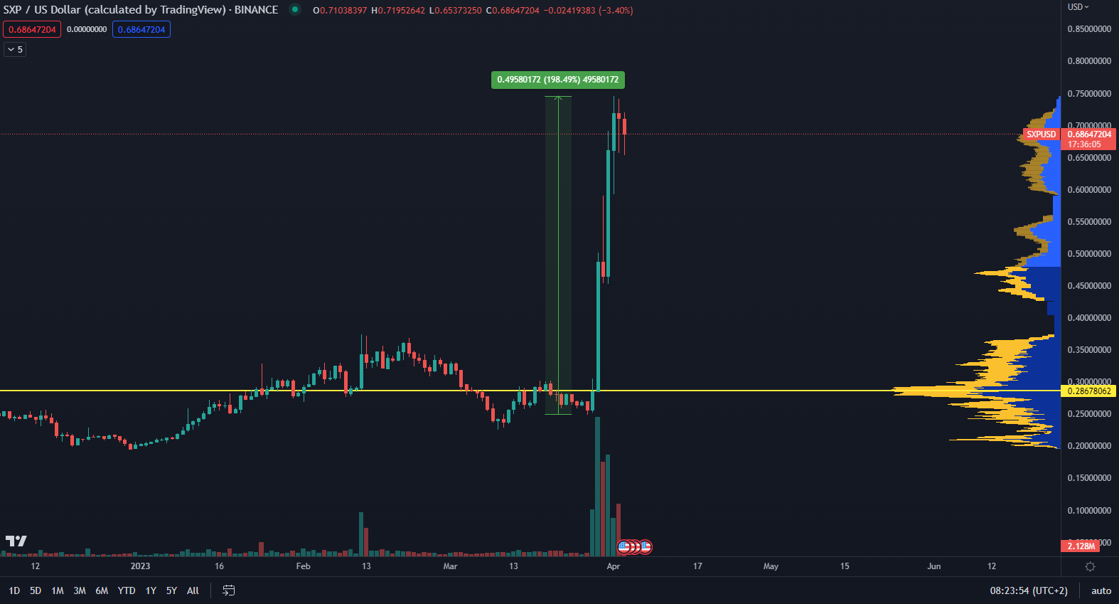 Ako vidíme na grafe nižšie, podľa údajov TradingView, SXP vytvorilo masívny trend a držitelia tokenu majú dôvod na radosť. Rovnaký extrémny rast bol vytvorený aj na objemoch, ktoré sme naposledy videli ešte počas bullrunu začiatkom roka 2021. Čo ale spôsobilo, že token z ničoho nič takto narástol?