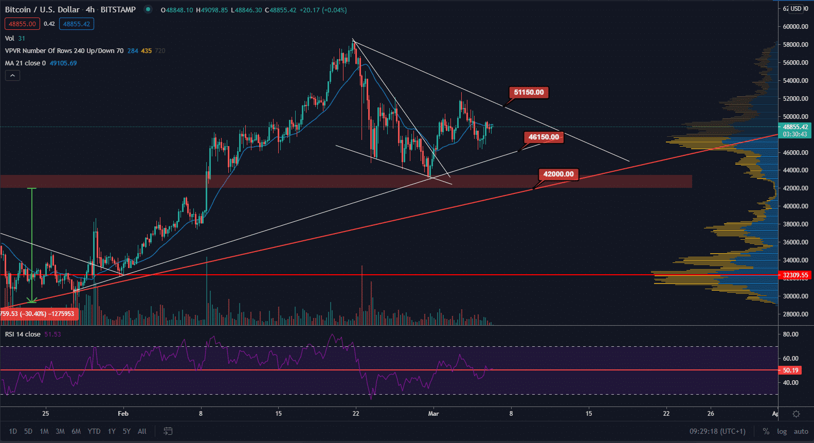 Najnovšie sa cenová akcia BTC pohybuje tesne pod 50,000 dolárov, zatiaľ čo otvorený záujem o bitcoinové futures tiež zostáva konzistentný. Hladina 50,000 dolárov sa tiež javí ako kľúčová úroveň krátkodobej rezistencie.