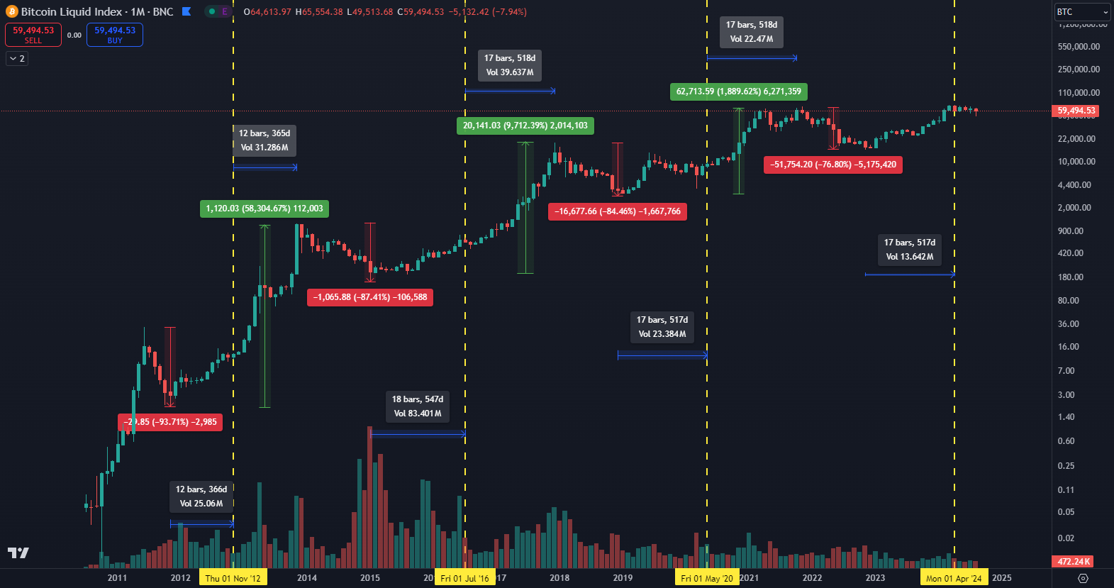 V tomto článku si vysvetlíme, na čo si dávať pozor, ak ste sa rozhodli v roku 2024 nakupovať kryptomeny. Je potrebné si uvedomiť, že ide o rizikové aktívum s extrémnymi cenovými výkyvmi, na čo väčšina účastníkov trhu nie je pripravená. Kedykoľvek sa totiž môže stať, že zo dňa na deň stratíte 30 % hodnoty portfólia. A dlhodobé korekcie trvajú aj rok, ako môžete vidieť podľa údajov TradingView na grafe nižšie.