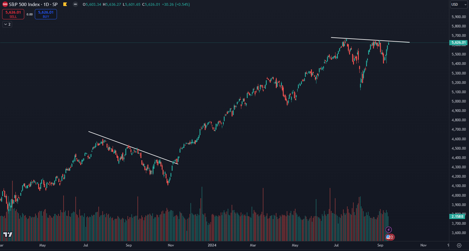 Je vysoko pravdepodobné, že ceny akcií čoskoro opäť prekonajú historické maximum. Nedávny odraz si porovnajte so situáciou spred roka. Pri korekciách je typickým javom to, že vznikajú zásadne klesajúce maximá, avšak cena tentokrát na to predošlé zaútočila, a preto sa nebude formovať korekčná štruktúra ako v roku 2023.
