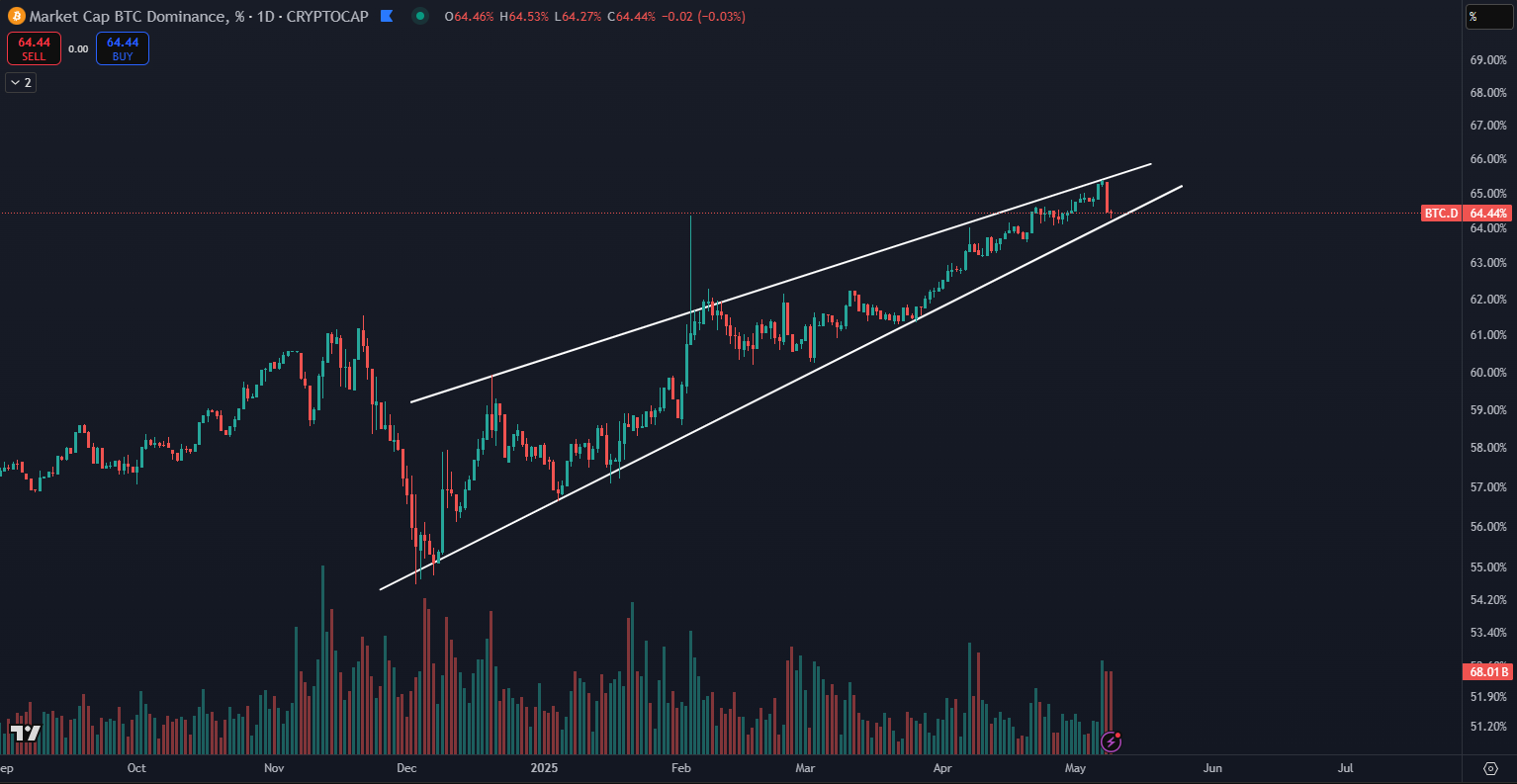 Rastúci klin bitcoinovej dominancie. Zdroj: tradingview.com
