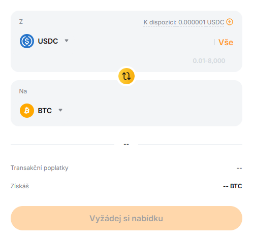 - Konverzia – Funkcia určená pre používateľov, ktorí už vlastnia iné kryptomeny a chcú ich rýchlo previesť na Bitcoin. Výhodou je nulový poplatok za konverziu, čo znamená, že dostanete presnú zobrazenú cenu bez nepríjemných prekvapení. Ideálne pri zmene portfólia alebo presune prostriedkov medzi kryptomenami.