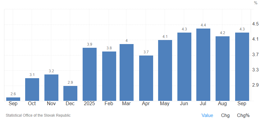 Inflácia na Slovensku za posledných 12 mesiacov. Zdroj: tradingeconomics.com