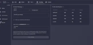 - Vklad aspoň 0,1 BTC – kapitál vložíte do účtu vašej stratégie. Tento kapitál je to s čím budete disponovať a reálne obchodovať. Na základe úspešnosti sa tento kapitál bude meniť.