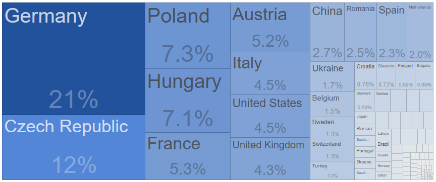 Slovensko je hospodársky závislé od Nemecka najmä pre silné obchodné väzby a úzku spoluprácu v priemysle. Nemecko je jedným z najväčších obchodných partnerov Slovenska, pričom významná časť exportu smeruje práve tam. Podľa údajov TradingEconomics tvorí export Slovenska až 21 % do Nemecka. Na druhej pozícii je Česko (12 %) a nasleduje Poľsko (7,3 %).
