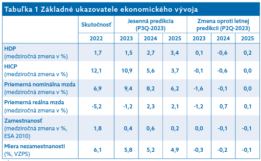 NBS zhoršila aj predpoveď rastu hrubého domáceho produktu (HDP) z 3,3 % na 2,7 % pre rok 2024. Jedným z hlavných dôvodov majú byť vysoké úrokové sadzby. Tie spôsobia spomalenie investícií, čo sa odzrkadlí aj na trhu s nehnuteľnosťami, ktoré majú dosiahnuť cenovú korekciu až 20 % do ďalšieho roka.