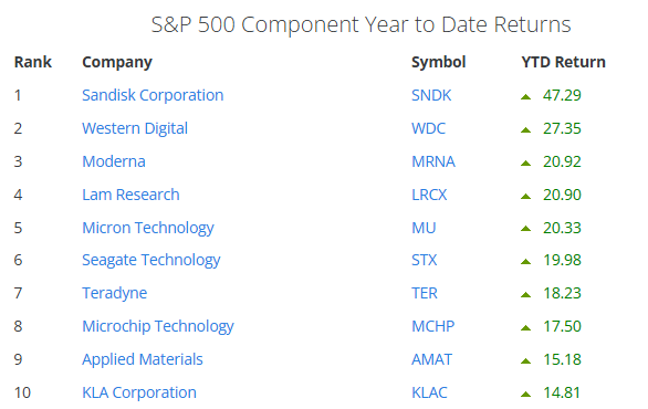 Vďaka tomuto výraznému zhodnoteniu sa akcie pamäťových spoločností zaradili medzi najziskovejšie tituly indexu S&P 500 v roku 2026. Sandisk vedie rebríček s tohtoročným výnosom 47,29 %, za ním nasleduje Western Digital s 27,35 %. Micron dosiahol 20,33 % a Seagate uzatvára štvoricu s 19,98 %, ukazujú údaje Slickcharts.