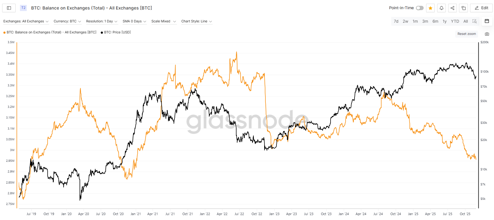 - Ponuka BTC klesá, na burzách je menej ako 3 milióny mincí.