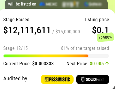 V nasledujúcej 13. fáze predpredaja sa hodnota tokenu $XYZ zvýši na 0,005 dolárov, čo znamená, že skorí investori majú príležitosť zabezpečiť si väčšiu zľavu.