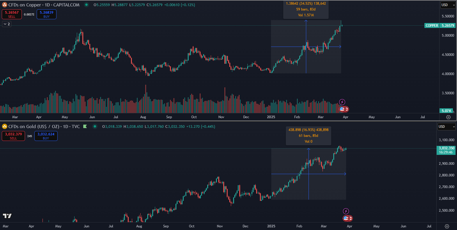 Magazín Bloomberg informoval o možnosti zavedenia ciel na dovoz medi v USA. Tento trend je spôsobený hlavne americkými odberateľmi, ktorí sa snažia predčasne nakúpiť meď v očakávaní dovozných ciel. Tarify zatiaľ neboli oficiálne oznámené, no prezident Trump už podpísal exekutívny príkaz na preskúmanie bezpečnostných rizík dovozu medi.