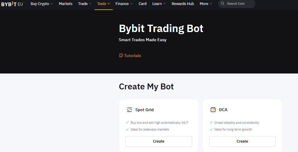 Bybit EU nedávno podľa oficiálneho oznámenia spustila dva automatizované trading boty – DCA a Spot Grid, ktoré sú dostupné pre všetkých KYC-verifikovaných používateľov.