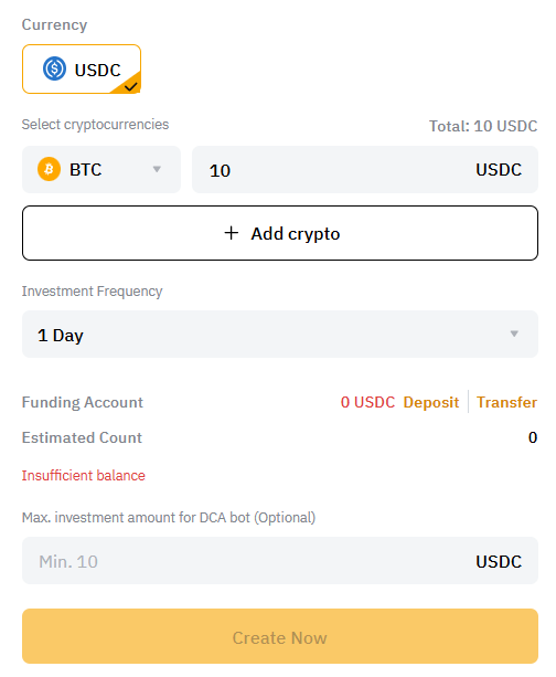 - Zadajte sumu na pravidelný nákup, napr. 10 dolárov denne. Taktiež si viete dobrovoľne nastaviť maximálnu sumu celkovej investície.