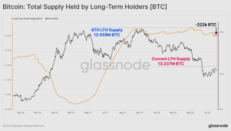 Podľa on-chain poskytovateľa Glassnode sa predajný tlak vytvoril predovšetkým u dlhodobých držiteľov. Mnohí z nich dokonca vlastnili bitcoiny za nákupné ceny blízko vrcholu v rokoch 2021 – 2022.