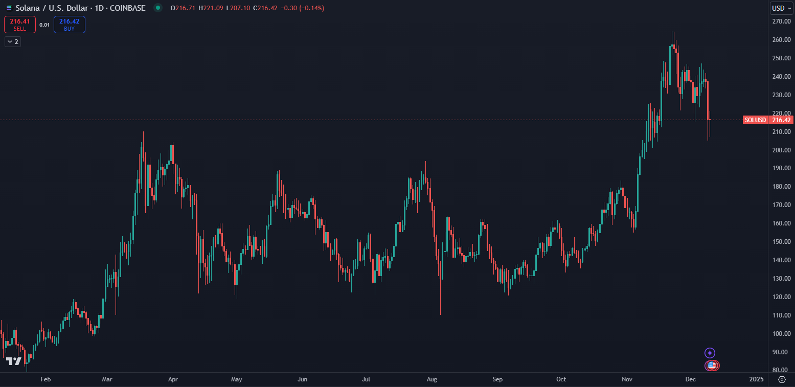 - Solana sa blíži k prelomeniu odporu na úrovni 264 dolárov.