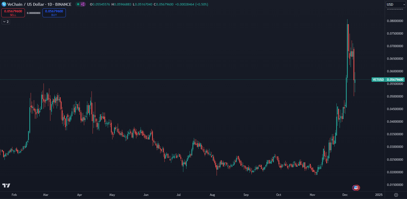 - VeChain zaznamenal 170 % nárast za posledný mesiac s pozitívnymi technickými indikátormi.