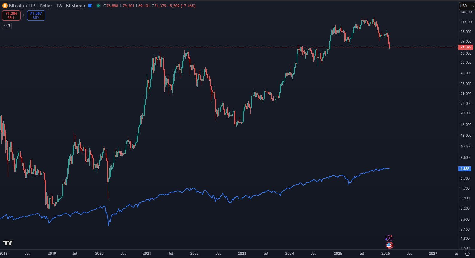 Bitcoin po prelomení hranice 70 000 dolárov pokračoval v oslabovaní, čo posilnilo obavy z hlbšej korekcie. Burry zdôrazňuje, že Bitcoin zatiaľ nepreukázal vlastnosti bezpečného prístavu podobného zlatu. Naopak, správa sa čoraz viac ako rizikové aktívum, ktoré kopíruje pohyby akciových trhov.