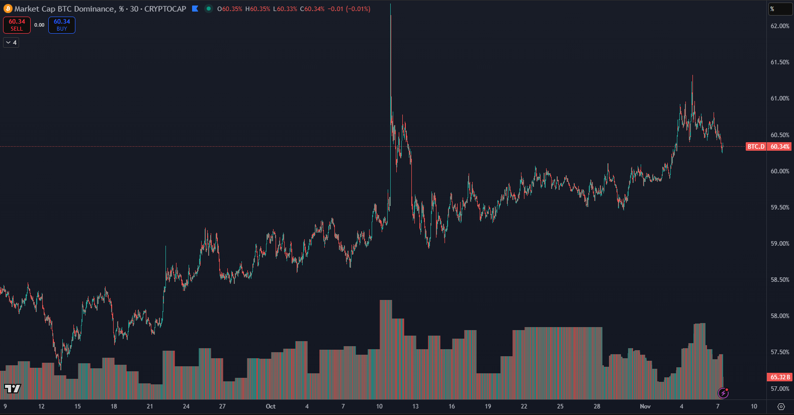Zaujímavé však je, že napriek poklesu ceny sa dominancia Bitcoinu opäť zvýšila. Na prvý pohľad to pôsobí paradoxne, no vysvetlenie je logické. Keď Bitcoin klesá, altcoiny zvyknú padať ešte viac. Investori preto presúvajú kapitál späť do Bitcoinu, ktorý je v čase neistoty považovaný za najstabilnejšie kryptoaktívum. Tento jav sa opakuje v každej fáze korekcie. Znamená to, že hoci trh oslabuje, Bitcoin si stále drží vedúcu pozíciu a dlhodobá dôvera investorov ostáva neohrozená.