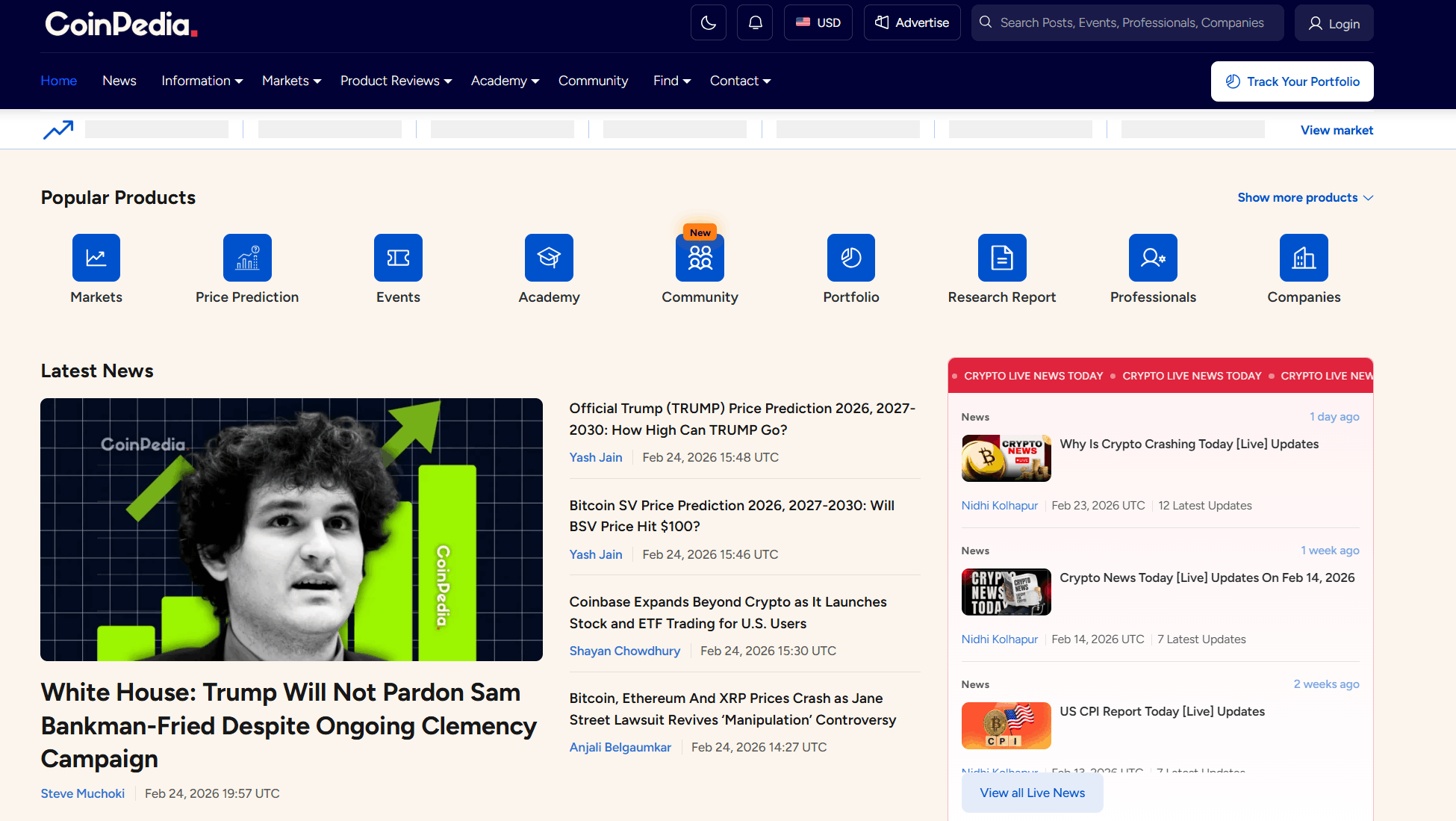 Coinpedia chápe, že úspešné investovanie presahuje samotné správy. Integrovaný tracker portfólia poskytuje prehľad o aktívach v reálnom čase a umožňuje rýchlo reagovať na zmeny trhu. Sekcia Markets agreguje ceny, objemy a kapitalizácie, čím vytvára komplexný prehľad.