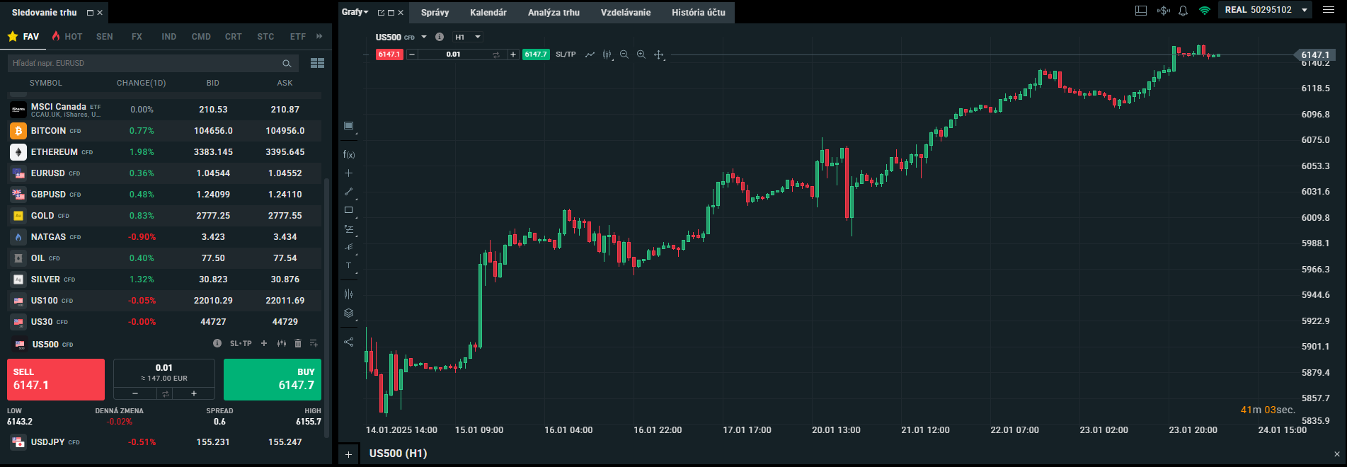 XTB je skvelá platforma na tento typ investovania, pretože ponúka nulové poplatky za nákup ETF, jednoduché ovládanie a širokú škálu vzdelávacích materiálov. Navyše, dlhodobé investovanie do indexov preukázateľne prináša stabilné zhodnotenie. Otvorte si účet a začnite už dnes. Obrázok nižšie ilustruje obchodnú platformu XTB.