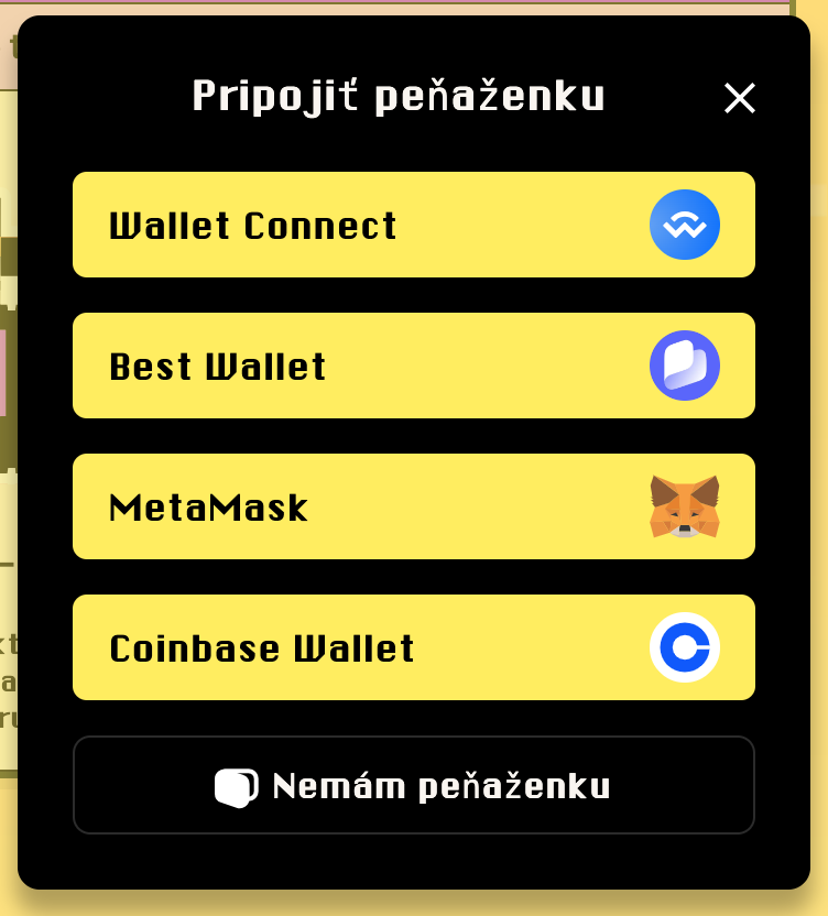 Peňaženky na PlayDoge. Zdroj: playdoge.io/sk