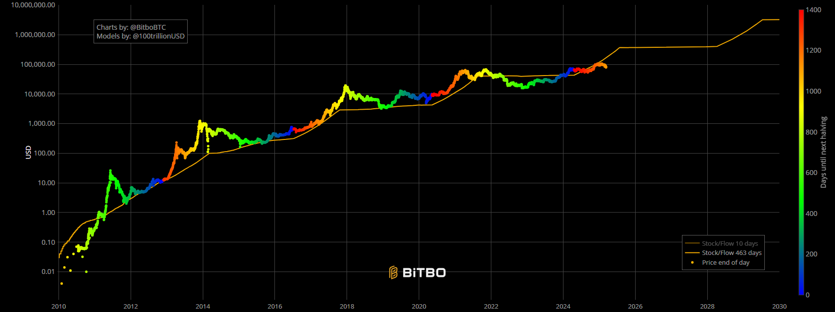 Stock to flow model od Plan B. Zdroj: charts.bitbo.io