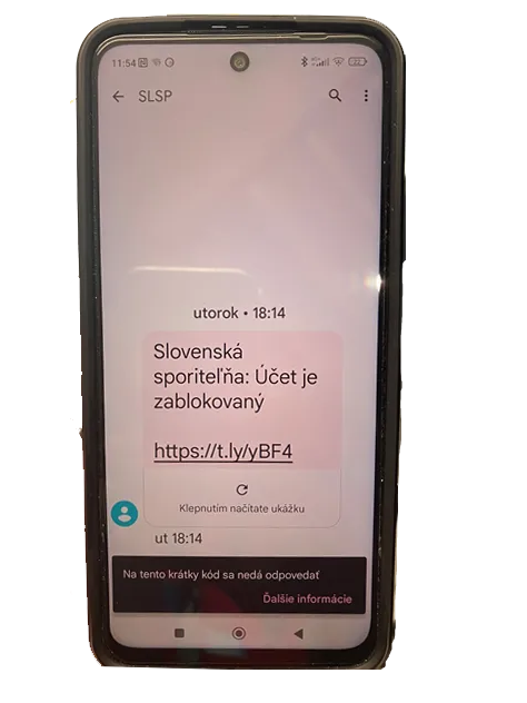 Rovnako aj meno Slovenskej sporiteľne podvodníci zneužili na SMS podvod. Falošná správa, tak ako v prípade Orangu a Telekomu, klientov pod nátlakom vyzýva kliknúť na priložený odkaz.