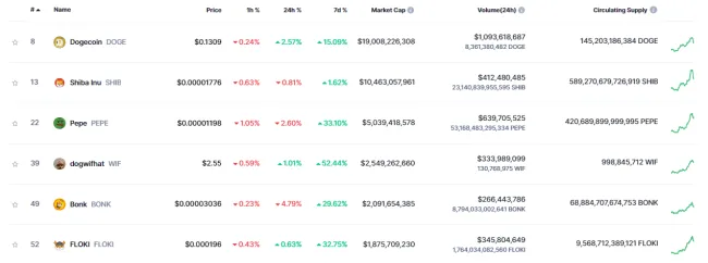 Poďme sa pozrieť na zhodnotenie najväčších meme coinov za posledné dni. DOGE za posledné dva týždne zaznamenal zhodnotenie 43 %, SHIB 41 %, PEPE 58 %, WIF 70 %, BONK 69 % a FLOKI 63 %. Takéto percentuálne zhodnotenie sme naposledy mohli vidieť ešte v máji.
