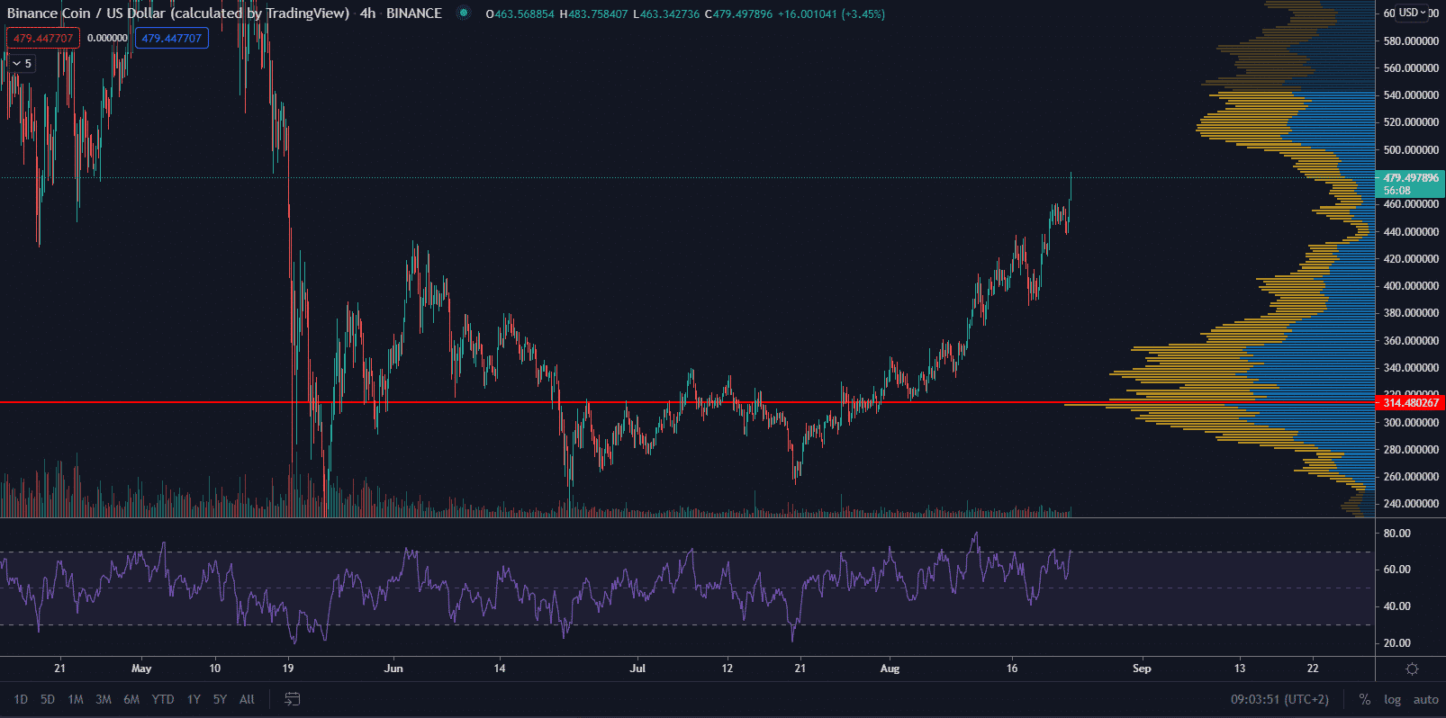 Údaje ukazujú, že obchodníci majú z budúcnosti BNB zmiešané emócie vzhľadom na regulačné problémy burzy Binance a novú povinnú politiku KYC. Investori majú dôvody pochybovať najmä preto, že konkurenčná platforma inteligentných zmlúv Solana (SOL) dosiahla 18. augusta historické maximum.
