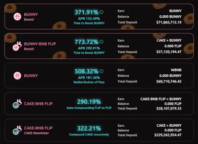 Ako už vyplýva z nadpisu, PancakeBunny projekt je postavený na agregovaní výnosov priamo z PancakeSwapu. Na tejto platforme môžete získavať nové tokeny pomocou poolov, prípadne LP tokenov, pričom vo väčšine prípadov máte sami na výber, aké kryptomeny chcete dostávať ako odmeny. Vďaka automatickej compound funkcii umožňuje táto platforma väčšie zisky než samotný PancakeSwap. Konkrétne sa bavíme o ročnom výnose 50-800% v závislosti od výberu LP tokenu, prípadne poolu.