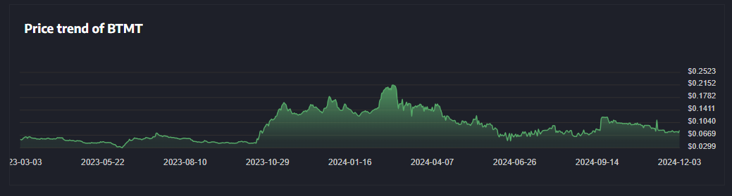 Túto možnosť príjmu poskytuje populárna kryptomenová burza BITmarkets, ktorá ponúka staking tokenu BTMT. Do siete vložíte tento token a vďaka tomu zvyšujete celkovú likviditu. Za toto poskytnutie likvidity vás BITmarkets odmeňuje úrokom. Na grafe nižšie navyše vidíte, že BTMT v čase rastie, takže okrem úroku zarábate aj na hodnote tokenu.