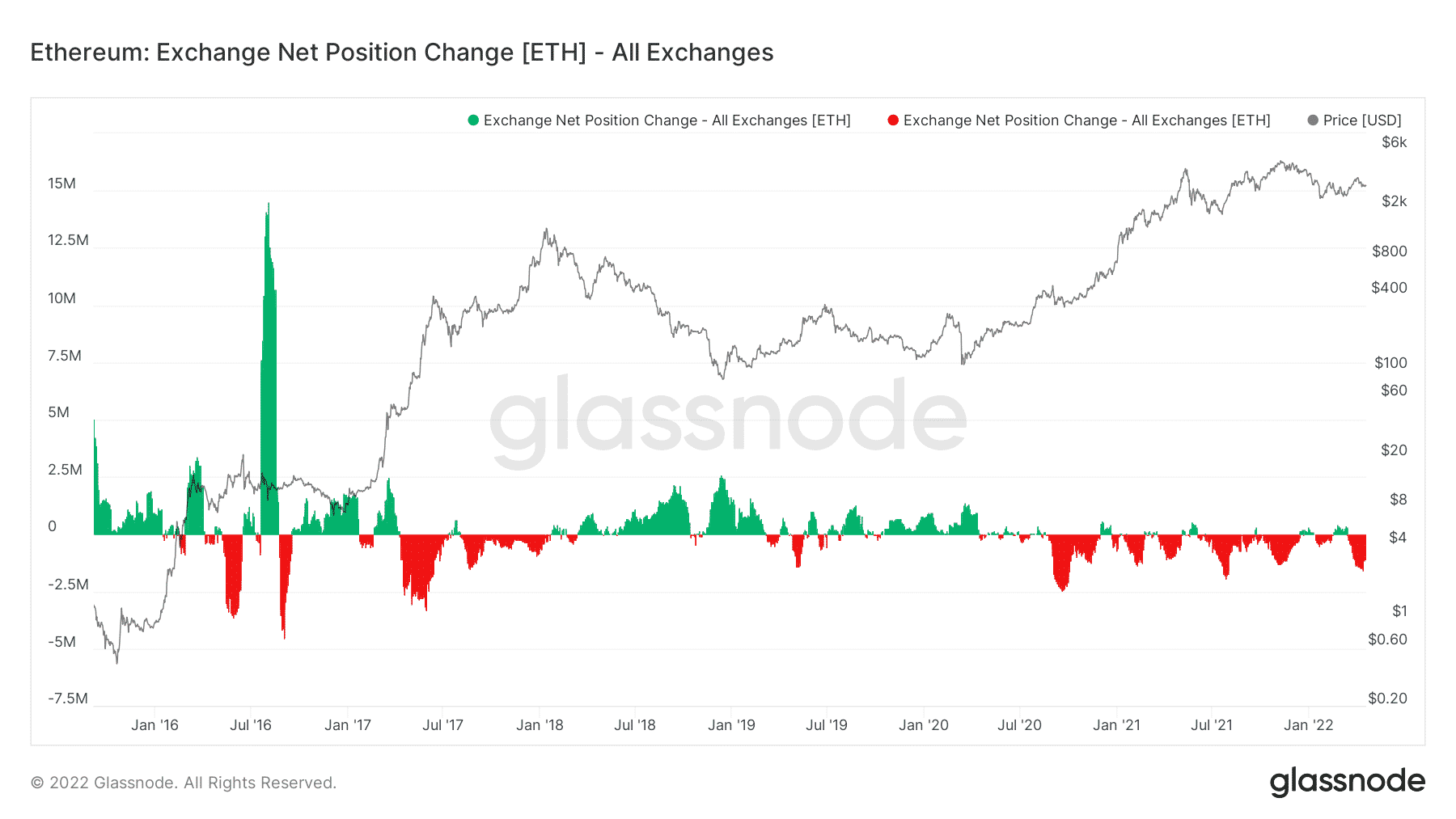 Optimisticky vyzerá aj indikátor ponuky na burzách. Podľa tohto ukazovateľa došlo k presunu až 94 000 ETH, čo môže naznačovať zníženie predajného tlaku. Takto masívny odlev bol zaznamenaný už šiestykrát.