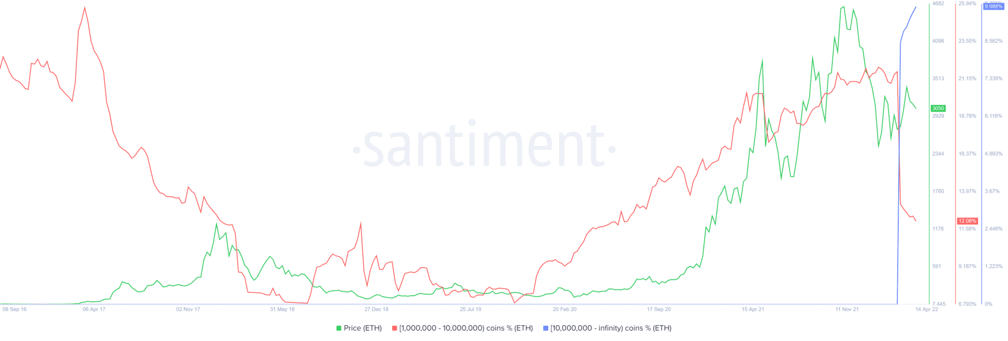 Dlhodobým býčím signálom je určite aj ponuka ETH na burzách. Od júla 2020 je vo výraznom klesajúcom trende. Tento stav sa prepadol z 29,69 milióna až na 14,96 milióna ETH. Je to teda odlev 11,73 milióna ETH za menej ako dva roky. Investori teda nie sú ochotní predávať.