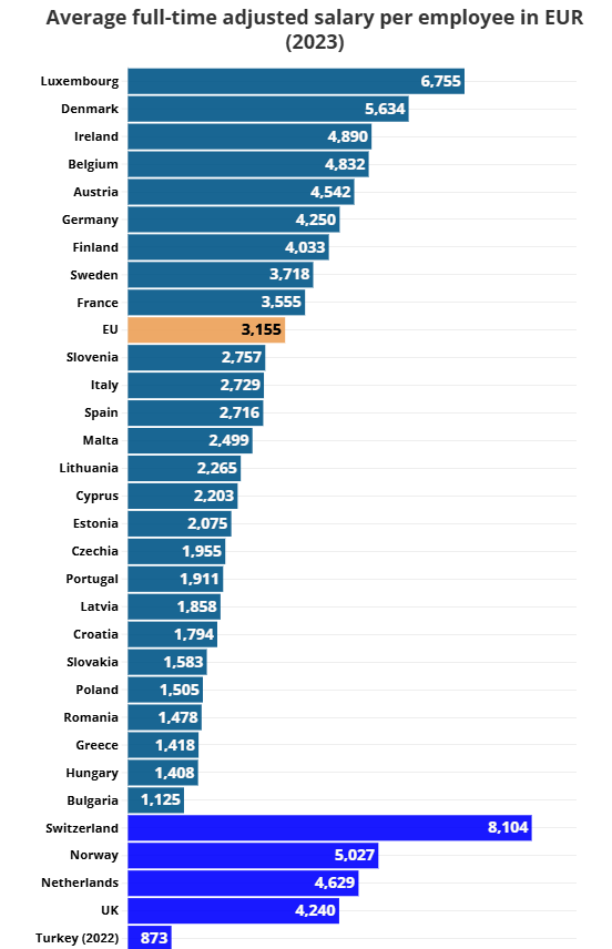 Nórsko a Dánsko patria medzi najatraktívnejšie destinácie pre kvalifikovaných odborníkov. Učiteľ v Nórsku môže očakávať ročný plat okolo 53 000 eur, zatiaľ čo v Dánsku je to približne 48 300 eur.
