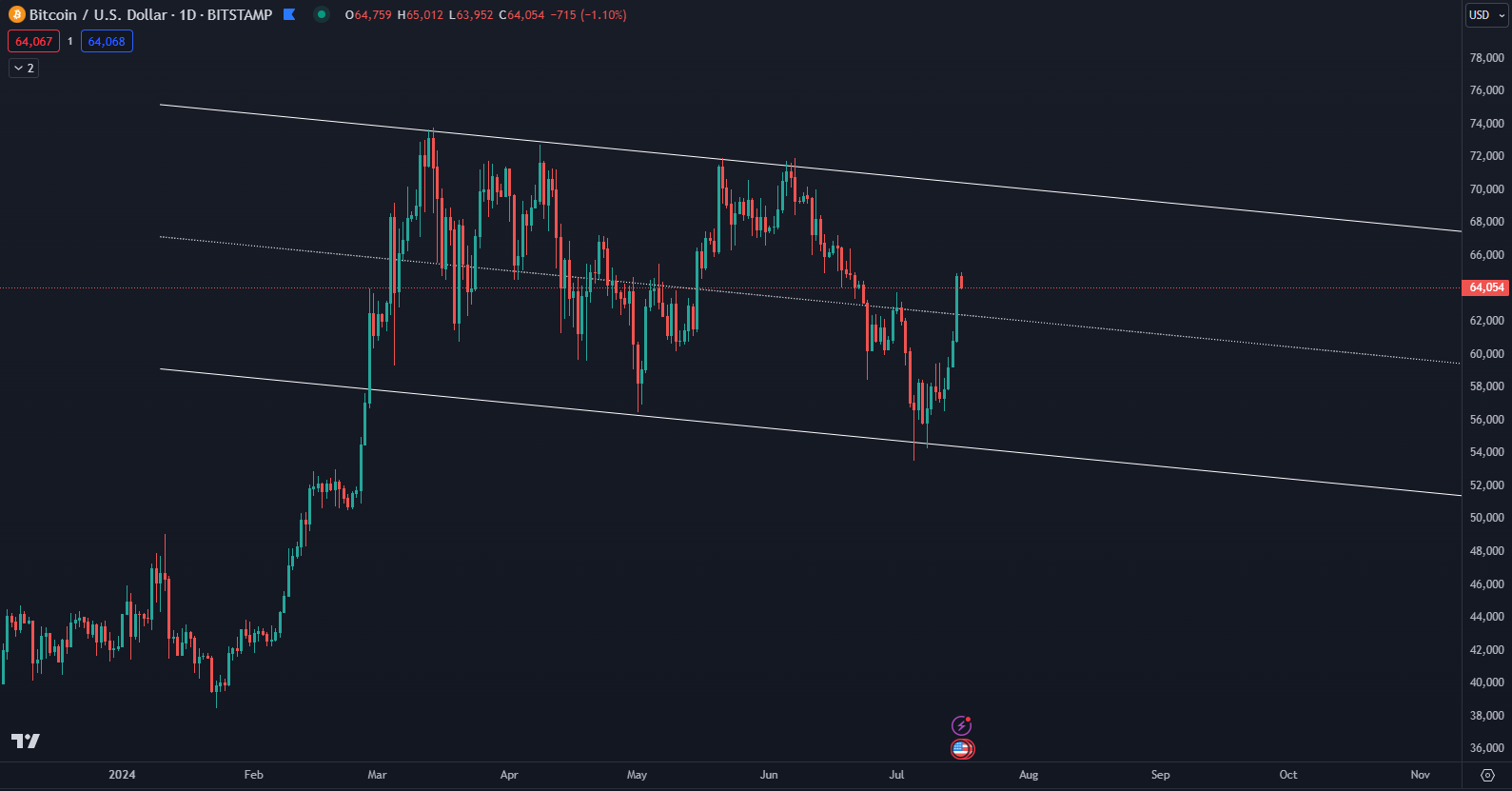 Bitcoin sformoval historické maximum ešte v polovici marca a odvtedy cena prevažne klesala. Najviac však utrpeli altcoiny. Bitcoin 5. júla klesol na najnižší bod 53 550 dolárov a len 10 dní na to dosiahol hranicu 65 000 dolárov.