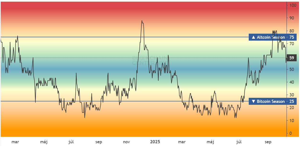 Altcoinová sezóna sa odkladá na záver roka. Zdroj: blockchaincenter.net