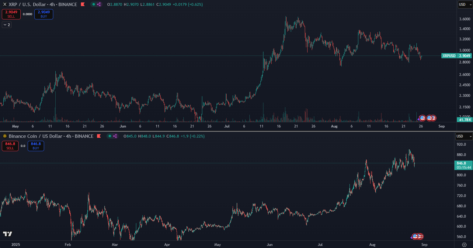 - Altcoiny ako Binance Coin a XRP sú tesne pod rekordmi.
