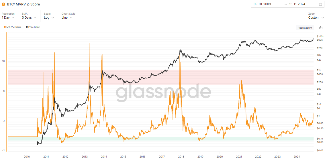 Ako môžete vidieť na grafe MVRV, Bitcoin je momentálne stále v stabilnej zóne. MVRV dosahuje niečo cez 3 body, čo znamená, že trhová cena je 3-krát vyššie ako tá realizovaná (nákupná cena držiteľov Bitcoinu). Len pre porovnanie, pri vrchole posledného cyklu metrika MVRV dosahovala až 7,6 bodov.