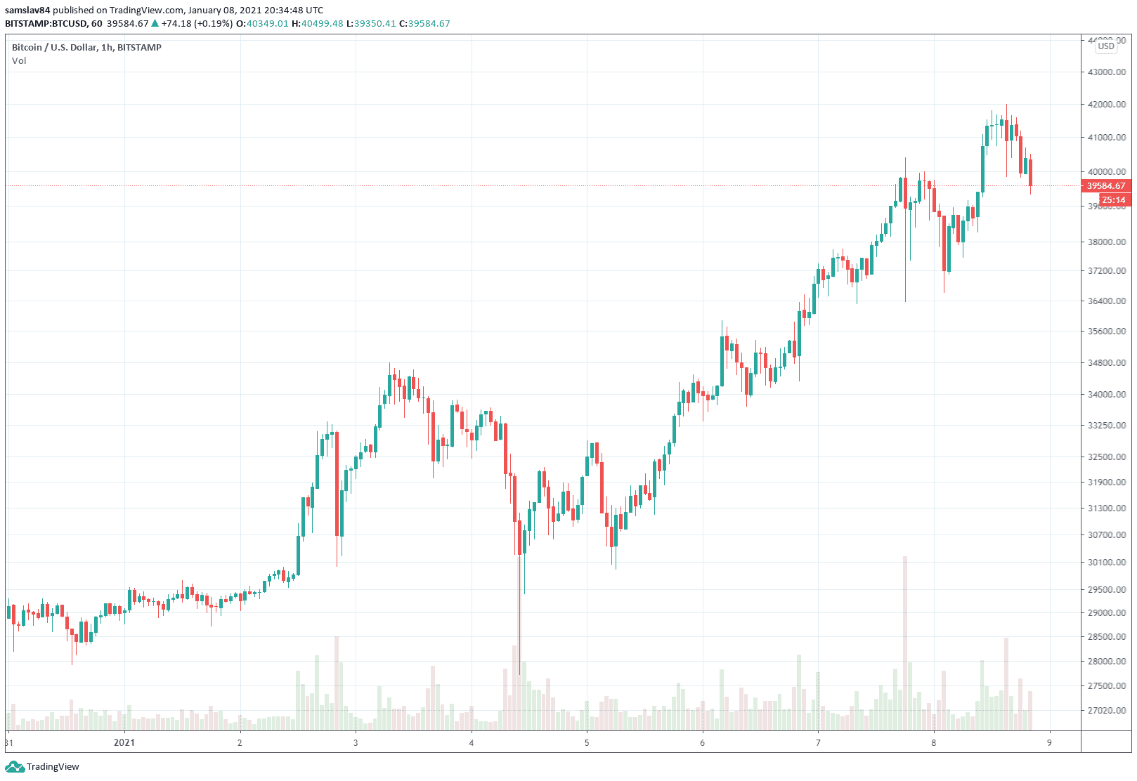 Bitcoin des večer zaznamenal mierny pokles, keď dnes o 16:00 po neúspešnom otestovaní hladiny 42 000 $ nastalo odmietnutie. Medvede opäť na aspoň na chvíľu prevzali žezlo a tlačia trh smerom dole. Aktuálne sa naďalej pohybujeme okolo ceny 40 000 $, takže nejde o nič svetoborné, no prepad o 2500 $ rozhodne stojí aspoň za zmienku.