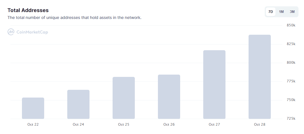 Za 24 hodín pribudlo 32 405 hodlerov tokenu SHIB. Hlavný konkurent DOGE tak prvýkrát prekročil hranicu 800 000.