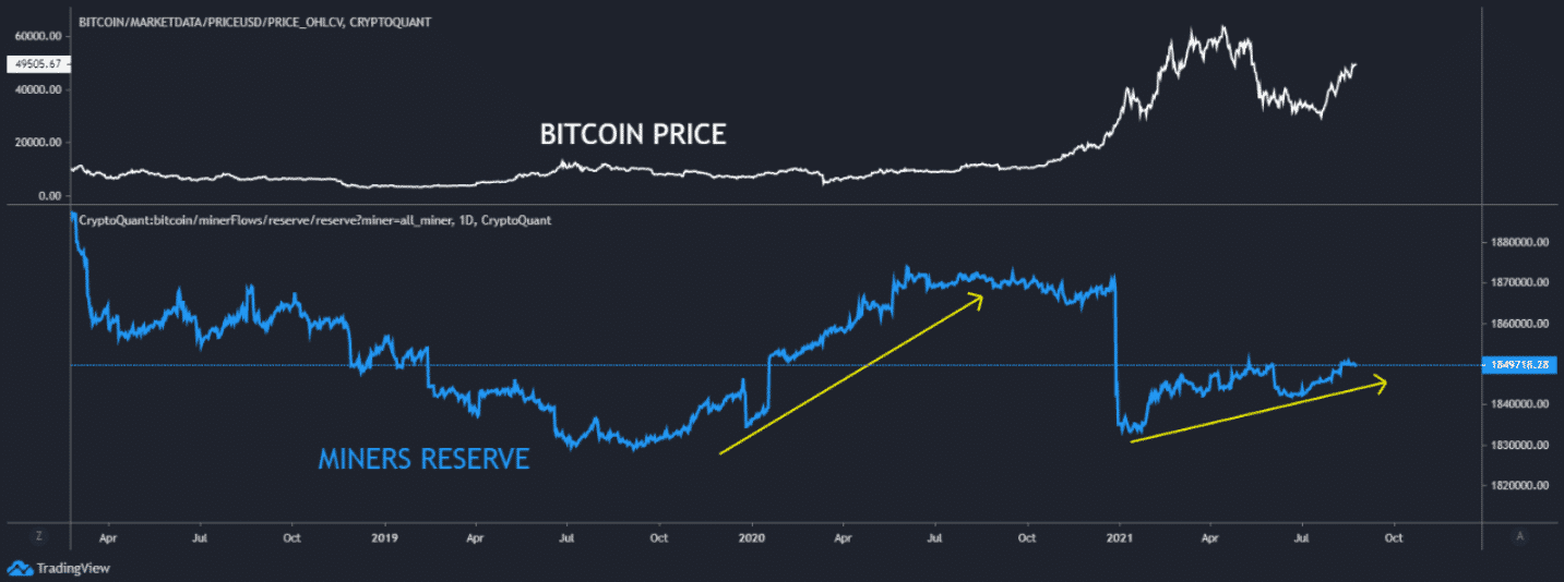 Rezerva BTC minerov vykazuje postupný vzostupný trend. Zdroj: TradingView